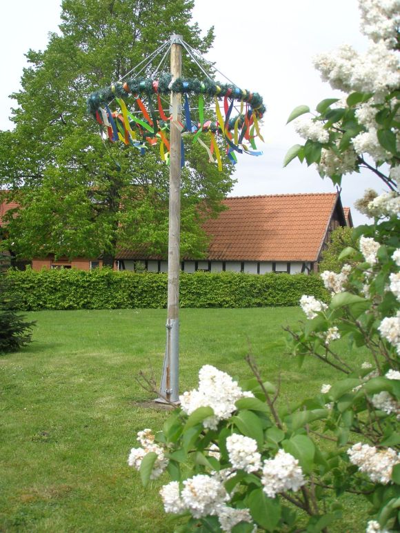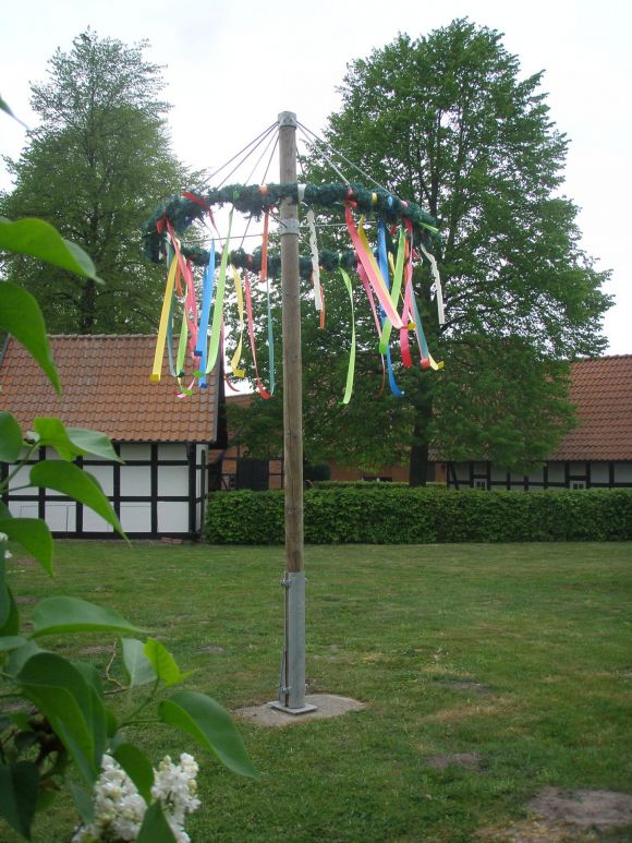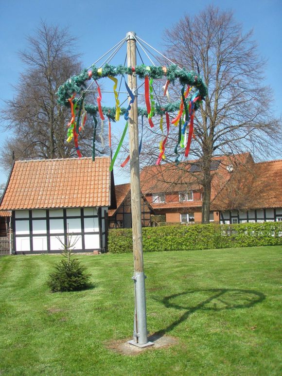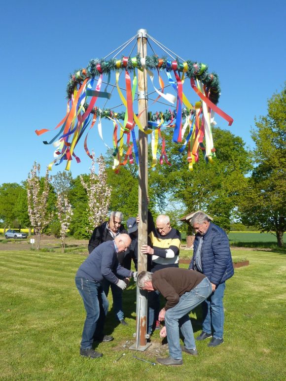Der Vorstand und die aktiven Mitglieder des Heimatvereins Holzhausen II e.V. haben auch in diesem Jahr den mit bunten Bändern geschmückten Maibaum aufgestellt. Für die Autofahrer und die Radfahrer ist er schon von weitem im Dorfgarten an der Minderheider Straße zu sehen.