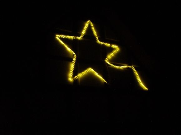 Auch in diesem Jahr leuchtet wieder der große Stern an dem Schuppen, der auf dem Gelände an der historischen Schmiede steht.