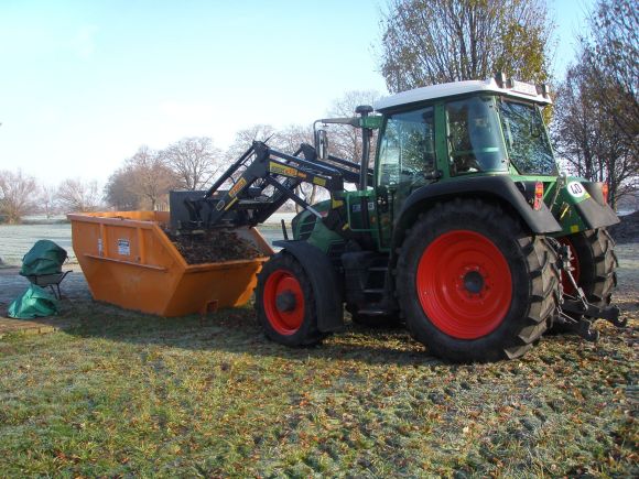 Jetzt sieht das Gelände an der Schmiede schon wieder richtig aufgeräumt aus, aber die Arbeiten sind noch nicht ganz abgeschlossen. Der Baumstumpf muss noch aus dem Boden gefräst und die kleine Bodenerhöhung eingeebnet werden.