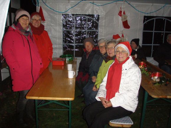 Das Wetter meinte es gut und so fanden sich die Gäste an den Stehtischen und Bierzeltgarnituren ein, um sich mit Bratwürstchen zu stärken. Kalte Getränke fanden ihre Abnehmer, aber auch der heiße „Övermann“ aus Apfelsaft und Weinbrand wärmte bei den kühlen Temperaturen die Hände und das Innenleben.