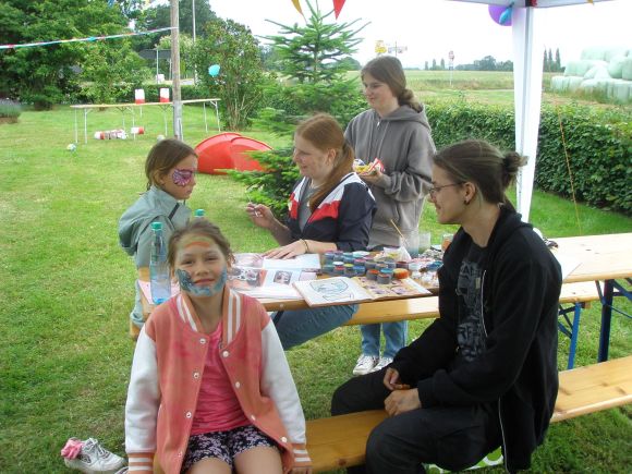 Vielleicht aufgrund der Sommerferien konnte der Verein nur wenige Kinder begrüßen, die dann nach dem kunstvollen Schminken wunderschön aussahen. Die angebotenen Spielgeräte warteten die meiste Zeit auf ihre Benutzer.