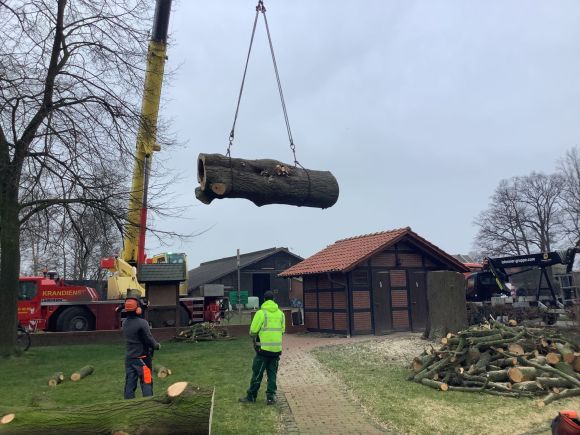 Hille-Holzhausen II. Wenn die Mitglieder des Heimatvereins Holzhausen II in wenigen Tagen zur Jahreshauptversammlung in die Handwerksscheune eilen, werden sie sich die Augen reiben. Etwas fehlt auf dem Grundstück an der Schmiede. Ja, es ist nicht zu übersehen, die große Linde, die zwischen Schmiede und Buswartehäuschen stand, ist verschwunden.