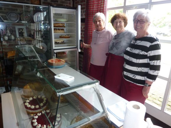 Selbstgebackene Torten, Kaffee und kalte Getränke gehörten wie immer zum Angebot und auch Erdbeer-Secco war wieder ein Renner. Bratwürstchen rundeten das Angebot ab.