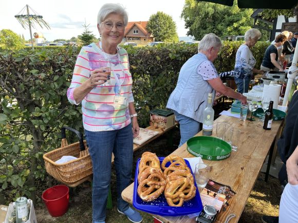 Das Wetter konnte nicht besser sein. So waren die Stehtische und Bierzeltgarnituren bald besetzt. Mit Bratwürstchen und Bretzeln wurde der Hunger gestillt und zum Kaiserwetter passten die kalten Getränke. Aber auch der heiße „Oevermann“ (Apfelsaft mit Weinbrand) erwärmte die Besucher zusätzlich.
