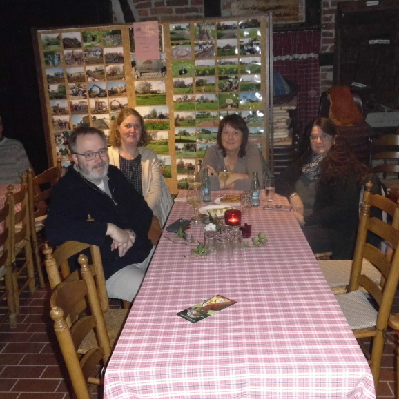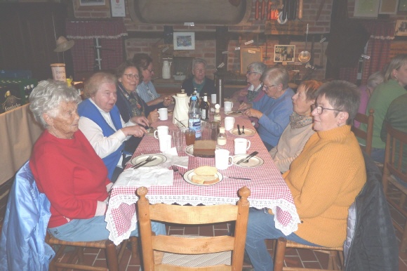 Nach den kulinarischen Genüssen gab es auch etwas zur Erbauung. Herbert Anton trug einen Text über einen Junggesellen vor, der bei seinen Kochversuchen die Rezeptanleitungen ganz wörtlich nahm und jämmerlich scheiterte. Die Vorsitzende Rosi Ullrich hatte einen Text über Senioren und über „Krauses Jubiläumsfeier“ mitgebracht. Danach konnte geklönt werden und alle Neuigkeiten wurden ausgetauscht. Die Handwerksscheune hatte sich wieder als Treffpunkt bewährt. Dieses Stippgrütze-Essen ist ein Dankeschön für die Hilfe und den Arbeitseinsatz der Mitglieder und Freunde des Vereins. Trotzdem ließen es sich einige Mitglieder nicht nehmen, einen Beitrag in die Spendenbox zu geben.